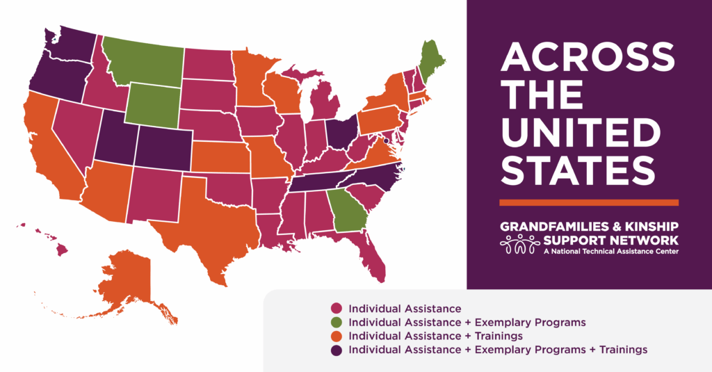 The Grandfamilies & Kinship Support Network launched in 2021 with a 5-year cooperative agreement from the U.S. Department of Health and Human Services Administration for Community Living. We exist to help community-based organizations and government agencies in states, tribes, and territories improve services and supports for grandfamilies and kinship families.