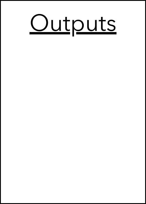 “Outputs” are products (often concrete) of the intervention that may not directly relate to the “outcomes.” For example, if I offer 10 support group meetings to decrease social isolation among group participants, at the end of the intervention, I’ll have 10 completed support group meetings (the “output”) that may or may not have decreased social isolation among the participants (the intended “outcome”).